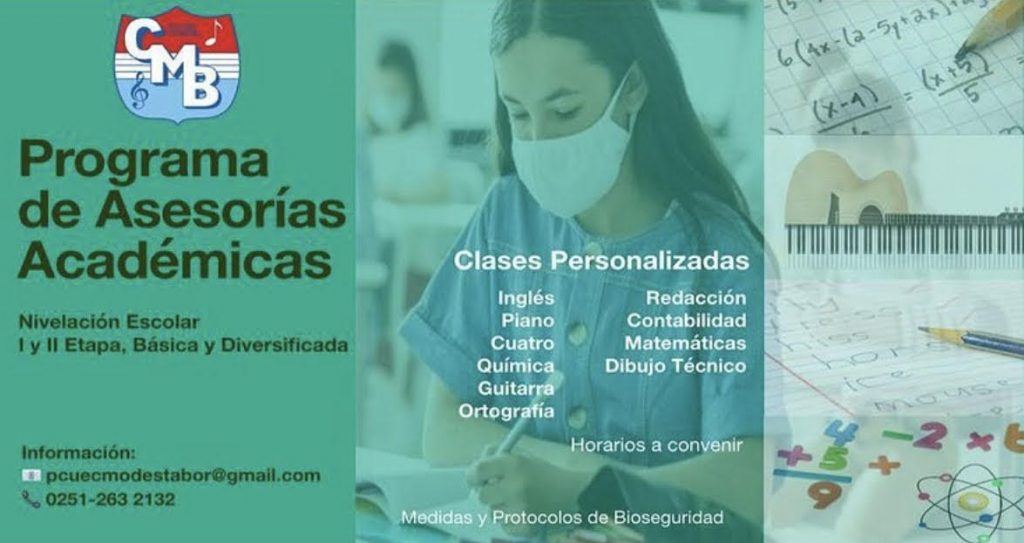 La U.E. Colegio Modesta Bor, ofrece para todo los interesados en mejorar y prepararse a los nuevos niveles, su Programa de Asesorías Académicas, dirigido por profesionales especialistas con clases personalizadas.