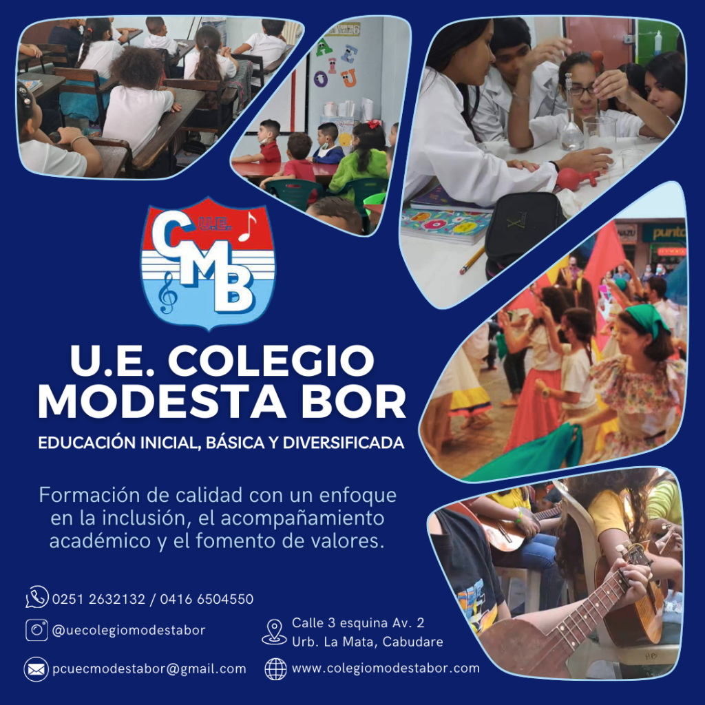 En la adaptación a los esquemas disruptivos actuales, la U.E. Colegio Modesta Bor, ha desarrollado un proceso de enseñanza y aprendizaje en formato mixto: virtual y presencial, con actividades formativas sincrónicas y asincrónicas que permitan al alumnado aprovechar los recursos pedagógicos y tecnológicos que nos ofrecen los nuevos tiempos, con tutelaje presencial y virtual, según las necesidades del estudiante y con las estrictas medidas y protocolos de bioseguridad.